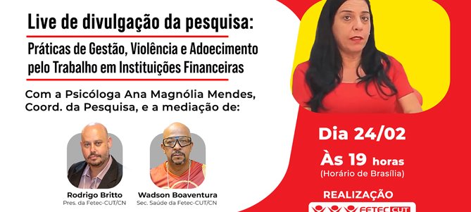 Ana Magnólia apresenta em live nesta terça 24 resultado da pesquisa sobre modelo de gestão e adoecimentos nos bancos