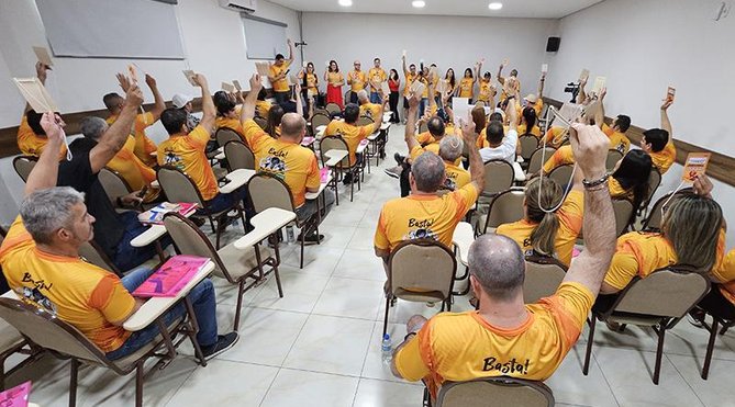 “É importante lembrar que estamos aqui, no hotel Larison, desde a sexta-feira, quando iniciamos o Curso para Novos Dirigentes Sindicais promovido pela Contraf-CUT em parceria com a Fetec Centro Norte. Foram dois dias de curso e o domingo dedicamos ao Congresso Estadual. São dois eventos distintos, mas que se complementam. Os diretores de base e delegados sindicais que participaram do curso de formação puderam, através da coordenação do experiente professor José Luís Vasquinho Paredes, aliada à participação especial da própria secretária de Formação Sindical da Contraf-CUT, Eliana Brasil, conhecer como funciona a nossa luta diária, a importância do Sindicato na vida do trabalhador do ramo financeiro e, com isso, se inspirar a se tornar uma futura e importante liderança do movimento sindical. E, no Congresso, os mesmos dirigentes e delegados sindicais, juntamente com os outros bancários que vieram no domingo, puderam acompanhar as palestras de Conjuntura Nacional do presidente da Fetec Centro Norte, Rodrigo Britto, da riquíssima palestra sobre a saúde bancária pela nossa já conhecida Vivian Monteiro, economista e técnica do DIEESE, e também contaram com a presença dos advogados do Escritório Fonseca & Assis Advogados Associados, que garantiram o suporte jurídico aos participantes. Portanto, tanto no curso quanto no Congresso contamos com a participação de ministrantes, palestrantes e figuras importantes do sindicalismo bancário regional e nacional, trazendo suas experiências e compartilhando conhecimento para que os trabalhadores voltem para suas casas com a certeza de que vale a pena investir numa jornada de consciência coletiva, de luta por eles mesmos e pelos seus pares”, pontuou Ivone.