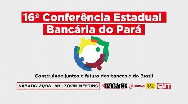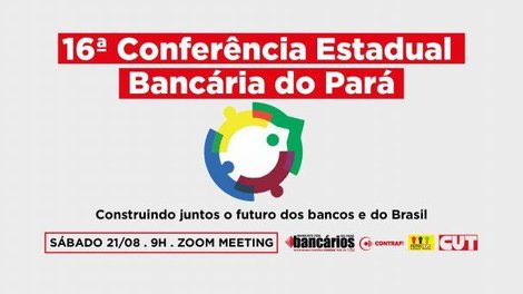 Com o tema “Construindo juntos o futuro dos bancos e do Brasil”, o Sindicato dos Bancários do Pará realiza nesse sábado 21/08, a partir das 09 horas, pelo aplicativo Zoom Meeting, a 16ª Conferência Estadual da categoria. Assim como em 2020, o evento desse ano também será totalmente digital devido a pandemia do novo coronavírus que ainda se mantém. As inscrições estão abertas e, para participar, basta preencher o formulário de inscrição.