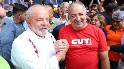 O presidente da CUT Nacional, Sérgio Nobre, durante seu discurso no ato desta segunda-feira, 1º de Maio, Dia do Trabalhador e da Trabalhadora, afirmou ao presidente Lula que o movimento sindical fará uma campanha permanente contra as altas taxas de juros no país que hoje está em 13,75%, por decisão do Banco Central (BC), que se tornou independente do governo federal no ano passado.