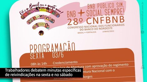 O 28º Congresso Nacional dos Funcionários do Banco do Nordeste (BNB) acontece nesta sexta-feira (3) e sábado (4), em formato híbrido. A parte presencial do evento será em Fortaleza (CE).