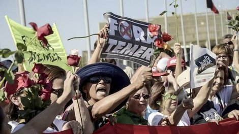 A manifestação ao lado de fora do Senado, era majoritariamente formada por mulheres. Com flores e muitas faixas, lembravam os contornos sexistas que o golpe apresenta.