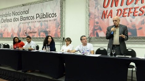 A mesa, mediada pela presidenta do Sindicato dos Bancários de São Paulo, Osasco e Região, Juvandia Moreira, estava composta pelo presidente da Federação Nacional das Associações do Pessoal da Caixa Econômica Federal (Fenae), Jair Pedro Ferreira, pelo presidente da Fetec do Paraná, Júnior César Dias e pela presidenta do Sindicato dos Bancários do Pará e dirigente da Contraf-CUT, Rosalina Amorim.