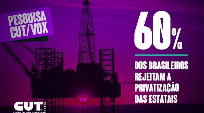 De acordo com a pesquisa CUT-Vox Populi, 60% dos brasileiros são contra o programa de privatização de estatais, entre elas a Petrobras. Outros 25% são a favor do programa de privatização e 15% não souberam ou não quiseram responder.