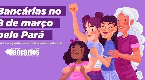 “Nesse 8 de março o movimento sindical bancário vai às ruas para lutar pela vida das mulheres e da Amazônia; por um Brasil sem machismo, sem LGBTFobia, sem racismo e sem fome; assim como pelo Fora Bolsonaro. Convocamos todas as mulheres trabalhadoras, principalmente as do ramo financeiro, para participarem das mobilizações desse 8 de março histórico e de muita luta no Pará”, destaca a presidenta do Sindicato dos Bancários do Pará, Tatiana Oliveira.