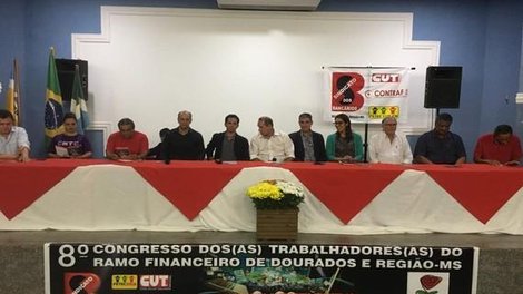 Dourados MS - Foi aberto na sexta-feira (27) o 8º Congresso dos Trabalhadores do Ramo Financeiro de Dourados e Região-MS. O Congresso está previsto no estatuto da entidade conforme prevê o Art. 46 item II e foi realizado na Coordenadoria Regional de Educação da Grande Dourados na sexta-feira e no sábado (28), onde reuniu delegados e delegadas da base sindical de Dourados, os quais discutiram e analisaram temas que estão relacionados as transformações no mundo do trabalho e da categoria bancária que estão em curso na política, economia e na relação do trabalho e as novas tecnologias, e serviu ainda para definir o plano de lutas para o próximo período.