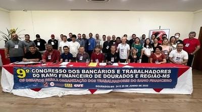 Realizado nos dias 24 e 25 de junho, o 9º Congresso dos Trabalhadores do Ramo Financeiro de Dourados e Região-MS, que teve abertura solene na sexta-feira (24) mais uma vez debateu e aprovou encaminhamentos para o próximo período da direção da entidade. O Congresso previsto no estatuto da entidade Art. 46 item II, foi realizado em auditório na área central da cidade, onde reuniu delegados e delegadas da base sindical de Dourados, os quais discutiram e analisaram temas que estão relacionados com as Consequências da Fragmentação do Emprego no Ramo Financeiro que estão em curso, as novas relações do trabalho e tecnologias.