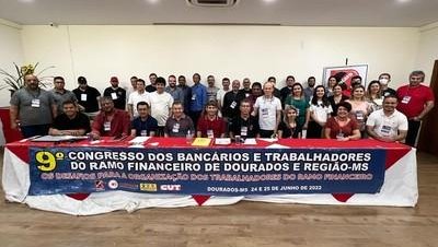 Realizado nos dias 24 e 25 de junho, o 9º Congresso dos Trabalhadores do Ramo Financeiro de Dourados e Região-MS, que teve abertura solene na sexta-feira (24) mais uma vez debateu e aprovou encaminhamentos para o próximo período da direção da entidade. O Congresso previsto no estatuto da entidade Art. 46 item II, foi realizado em auditório na área central da cidade, onde reuniu delegados e delegadas da base sindical de Dourados, os quais discutiram e analisaram temas que estão relacionados com as Consequências da Fragmentação do Emprego no Ramo Financeiro que estão em curso, as novas relações do trabalho e tecnologias.