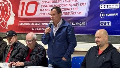 Com uma mesa composta por autoridades políticas, sindicais e de movimentos sociais, o 10º Congresso dos Trabalhadores do Ramo Financeiro de Dourados e Região MS teve a sua abertura na noite desta sexta-feira (30) na Sede do Sindicato em Dourados.