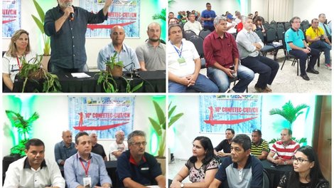 Depois da análise de conjuntura com palestrantes convidados (veja aqui), o 10º Congresso da Fetec-CUT/CN prosseguiu nesta segunda-feira 17 à noite com a abertura solene do evento, inaugurada com uma saudação e agradecimentos do presidente José Avelino. Participam do Congresso, que está sendo realizado em Cuiabá-MT, 148 delegados dos 12 sindicatos filiados à Federação, eleitos em assembleias de base.