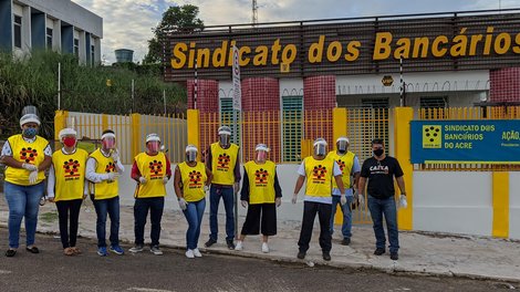 Ontem foi dia de intervenção direta, não deu de resolver pelo meios digitais. Já são três trabalhadores do setor bancário doentes de Coronavírus em Rio Branco. O sindicato dos bancários com auxílio de 8 voluntários foi as ruas fazer o que o poder público está se negando a fazer, há quase dois meses o sindicato vem pedindo ao governador do Estado que acabe com as aglomerações nas portas das agências bancárias e endureça as regras de isolamento social, mas de forma irresponsável as ações do governo caminham na contramão das orientações sanitárias. Organizamos quase 1km de fila numa das maiores agências bancárias da região norte, são mais de mil pessoas atendidas por dia, isso aumenta a necessidade de intervenção do Estado, pois um trabalhador com Coronavírus nessa agência pode representar centenas de clientes e usuários infectados.