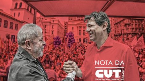 Diante de todas as violências institucionais do Poder Judiciário para impedir a candidatura Lula, que desrespeitaram os mais elementares princípios do Estado de Direito e a determinação do Comitê de Direitos Humanos da ONU para que o Estado Brasileiro garantisse o direito de Lula ser candidato, a CUT vai apoiar a decisão do ex-presidente Lula de indicar Fernando Haddad (PT-SP) e a deputada Manuela D'Ávila (PC do B-RS), como candidatos a presidente e vice, respectivamente, na chapa da coligação “O Brasil Feliz de Novo”, composta pelo PT, PC do B e PROS.