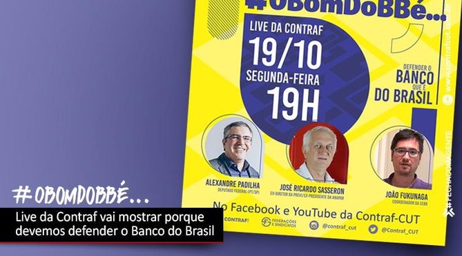 O deputado federal Alexandre Padilha (PT/SP) é o convidado da Live da Contraf-CUT desta segunda (19), a partir das 17h, que vai debater sobre a defesa dos bancos públicos e, especificamente, do Banco do Brasil. O ex-diretor da Previ e ex-presidente da Associação Nacional dos Participantes de Previdência Complementar e de Autogestão em Saúde, José Ricardo Sasseron, também contribuirá com o debate, que será mediado pelo coordenado da Comissão de Empresa dos Funcionários do Banco do Brasil, João Fukunaga e transmitido ao vivo pelo Facebook e pelo Youtube da Contraf-CUT.
