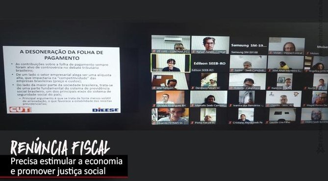 Esse cenário foi desdobrado na apresentação “Desoneração da folha de pagamento, perspectivas e impasses”, feita pelo economista do Departamento Intersindical de Estatística e Estudos Socioeconômicos (Dieese), Leandro Horie, na última reunião do Coletivo Nacional de Formação da Confederação Nacional dos Trabalhadores do Ramos Financeiro (Contraf-CUT), realizada na sexta-feira (8), no formato remoto, por plataforma digital.