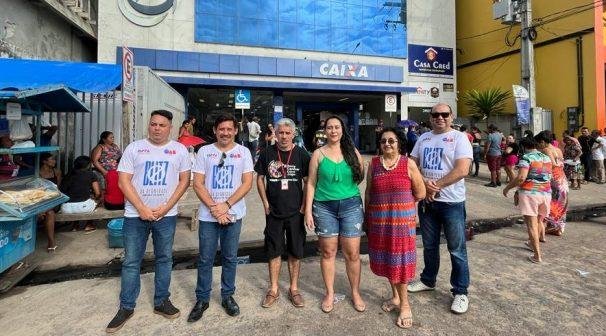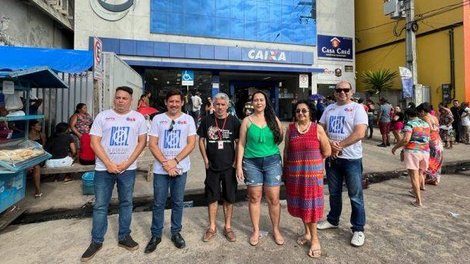 Esgoto a céu aberto, calor, horas em pé: essas são as condições desumanas de espera por atendimento nas filas quilométricas em frente à agência da Caixa Econômica em Cametá, nordeste paraense. Mas na manhã da última sexta-feira (11), além de clientes, usuários, terceirizadas e terceirizados que fazem a triagem da fila; funcionárias da prefeitura e advogados da OAB-Seção Cametá realizavam a Blitz da Dignidade Bancária.