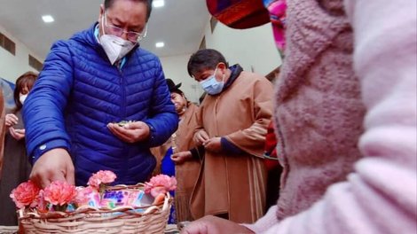 O presidente eleito da Bolívia, Luis Arce, foi às redes sociais nesta sexta-feira (6) para compartilhar fotos da cerimônia que participou junto com os amautas, guias de espiritualidade e sabedoria andina, no sítio arqueológico de Tiwanaku. Encontro ocorre após Arce sofrer um atentado enquanto se reunia com dirigentes do Movimiento al Socialismo (MAS) em La Paz.