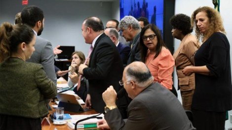 Deputados favoráveis à matéria também protestavam aos gritos: “Obstrução na mesa não é obstrução, é coação”, vociferou um deles.