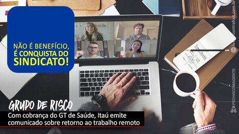 Atendendo a reivindicação do Grupo de Trabalho (GT) de Saúde, o banco Itaú voltou atrás quanto ao retorno do grupo de risco ao trabalho presencial. A notícia foi divulgada pelo GT, no entanto, a comunicação com os gestores estava gerando dúvidas.