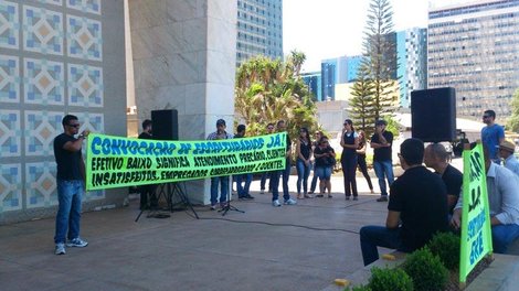 Brasília - Na quarta-feira (11), os concursados do BRB que aguardam convocação fizeram nova manifestação em frente ao Edifício Brasília, sede da instituição financeira, cobrando uma posição da diretoria no sentido de convocar os aprovados para ocuparem vagas existentes no banco.