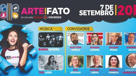 A 11ª edição do Arte|Fato, que acontece na próxima terça-feira (7 de Setembro), tem como atração musical a cantora Taís Lara, acompanhada do instrumentista João Marinho, e da Banda QU4DRA, que apresentarão um repertório de clássicos da MPB e do rock internacional. O programa será transmitido ao vivo, a partir das 20h, do Teatro dos Bancários, pelo canal do Sindicato no youtube www.youtube.com/bancariosbsb.
