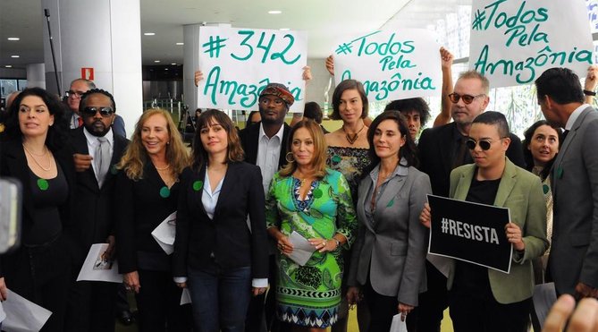Um grupo de artistas e ativistas entregou aos presidentes da Câmara, Rodrigo Maia (DEM-RJ), e do Senado, Eunício Oliveira (PMDB-CE), um abaixo-assinado virtual com 1,5 milhão de assinaturas em favor da Amazônia. Eles também protestaram contra a decisão da Câmara de barrar a entrada de lideranças indígenas no gabinete da presidência. Entre os pontos da petição está a derrubada do decreto que extingue a Renca (Reserva Nacional de Cobre e Associados), da flexibilização das regras de mineração, do desmonte do licenciamento ambiental.