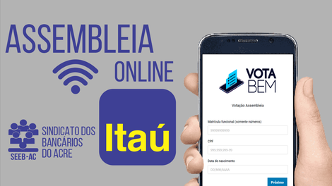 Participe da assembleia do ACT Itaú. Votação virtual será pelo sistema votabem de 08h do dia 13.05.2021 até às 22h do dia 14.05.2021.