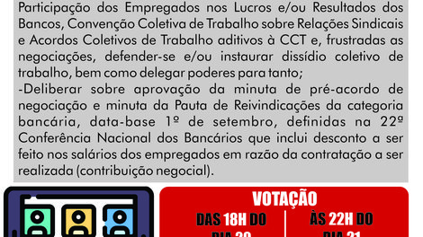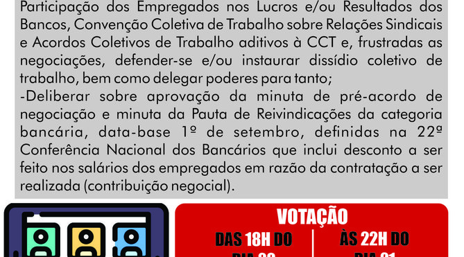 A Assembleia Virtual para aprovação da Minuta da Campanha Nacional 2020 estará disponível a partir das 18h do dia 20/07 até as 22h do dia 21/07.
