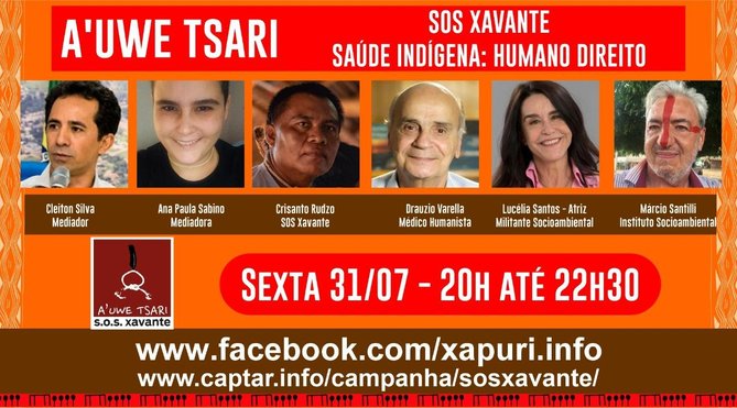 O presidente da Federação dos Bancários do Centro-Norte (Fetec-CUT/CN), Cleiton dos Santos, participa como mediador nesta sexta-feira 31, das 20h às 22h30 de Brasília, de transmissão ao vivo da campanha A'uwe Tsari - S.O.S. Xavante, que terá o médico Dráuzio Varella, a atriz Lucélia Santos, o ambientalista Márcio Santilli e o líder indígena Crisanto Rudzo. A live será no canal facebook.com/xapuri.info e também terá como mediadora a líder Xavante Ana Paula Sabino.