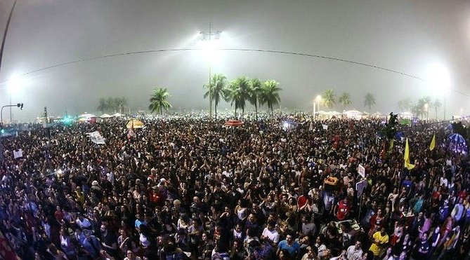 "Esse grande ato-show pelas 'Diretas Já' vai além dos movimentos sociais e dos partidos de esquerda. Esse movimento representa os 85% da população brasileira que quer escolher seu presidente. A população sabe que a única saída para a crise política é chamar o povo a decidir. Hoje o grito é em Copacabana, mas esse movimento vai tomar o país nas próximas semanas", afirmou Boulos.