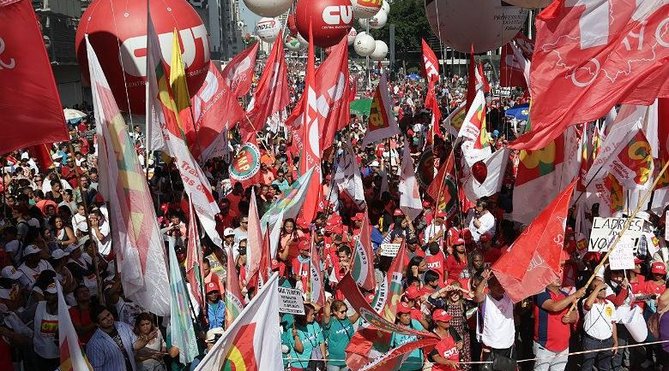 Os discursos também defenderam a antecipação das eleições gerais de 2018 para este ano. "Nada funciona no Brasil porque não há credibilidade", disse o presidente da CUT.