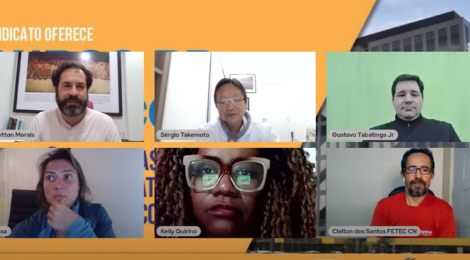 Os presidentes da Fenae e da Fetec Centro Norte, Sérgio Takemoto e Cleiton dos Santos, também participaram da live de abertura do curso preparatório. Os dirigentes frisaram em suas falas a importância da contratação de mais trabalhadores para os bancos públicos e da valorização dessas instituições para o fortalecimento das políticas públicas. Takemoto, que lidera entidade dos empregados da Caixa, mencionou que a Fenae colabora com o projeto porque acredita que a defesa do BB também fortalece outros bancos públicos, como é o caso da Caixa.