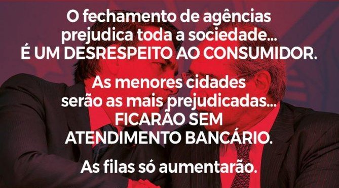 “Estamos em um processo de mobilização vigoroso e crescente. A disposição de luta e enfrentamento que os bancários e bancárias têm demonstrado não deixa dúvida quanto à perspectiva de revertermos essa desestruturação com fechamento de agências e demissão em massa, principalmente com a evolução da entrada em cena também de atores sociais e políticos em defesa do Banco do Brasil como instituição pública indissociável da vida dos brasileiros e do processo de desenvolvimento do nosso país”, pontua o presidente do Sindicato, Kleytton Morais.
