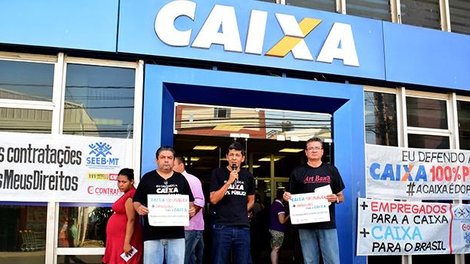 Cuiabá MT - Nesta quarta-feira (03.08), Dia Nacional de Luta, o Sindicato dos Bancários de Mato Grosso (SEEB/MT) e os demais Sindicatos dos Bancários de todo o país estão protestando contra a retirada de direitos dos empregados e pela manutenção do caráter 100% público do banco, ameaçado pelo governo.