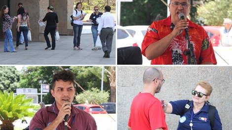 Brasília - Empregados e empregadas da Caixa protestaram em todo o país, nesta quarta-feira (18), contra os ataques à Caixa como banco 100% público e em defesa dos participantes da Funcef, o fundo de pensão dos bancários da instituição. Neste Dia Nacional de Luta, a mobilização organizada pelo Sindicato em Brasília se concentrou em frente ao edifício Matriz I e também dialogou com clientes e usuários nas agências.