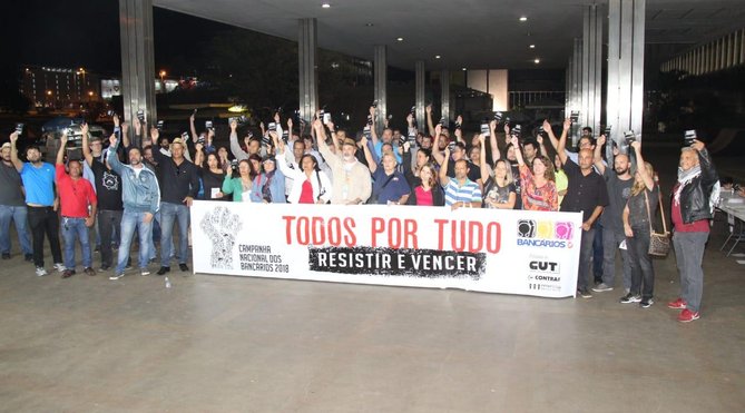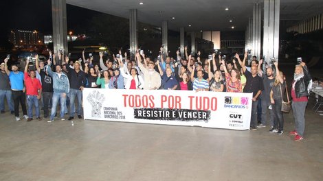 Brasília - Em assembleia geral realizada na noite desta segunda-feira 11, na Praça do Cebolão, no Setor Bancário Sul, os bancários de Brasília ratificaram a minuta de pré-acordo e a minuta geral de reivindicações da categoria aprovada pelos delegados e delegadas da 20ª Conferência Nacional, que ocorreu entre os dias 8 e 10, em São Paulo. Os trabalhadores também referendaram as pautas específicas definidas nos congressos nacionais dos funcionários do Banco do Brasil e dos empregados da Caixa Econômica Federal para a Campanha Nacional Unificada 2018, que tem como mote "Todos por Tudo - Resistir e vencer".