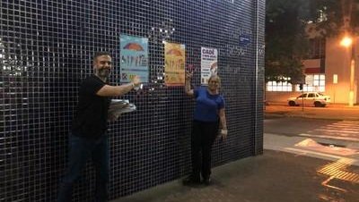 Em razão da pandemia do novo coronavírus a direção do sindicato optou por realizar a atividade no final da tarde e início da noite, para não provocar aglomeração, evitando assim a possibilidade de contaminação dos envolvidos na colagem dos cartazes, assim como da própria categoria e dos clientes e usuários dos bancos.