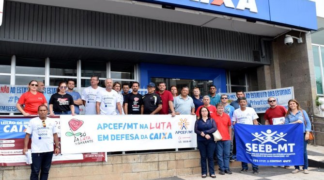 Cuiabá MT - O Sindicato dos Bancários de Mato Grosso (Seeb/MT) e os demais sindicatos de bancários de todo o país realizam, nesta quinta-feira (07.12), manifestações contra a intenção do governo Temer tornar o banco uma empresa de sociedade anônima, entre outras medidas promovidas pelo banco que prejudicam os funcionários e toda a sociedade.