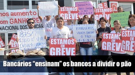 Cuiabá MT - O Sindicato dos Bancários de Mato Grosso (SEEB/MT), neste 17º dia de greve, quinta-feira, (22/10), realizaram um café da manhã em frente ao Bradesco, na Avenida Couto Magalhães, Centro de Várzea. O objetivo da manifestação foi mostrar para os clientes e usuários do sistema financeiro que a greve dos bancários é por culpa da ganância dos banqueiros que estão tendo lucros exorbitantes explorando a população e seus trabalhadores.