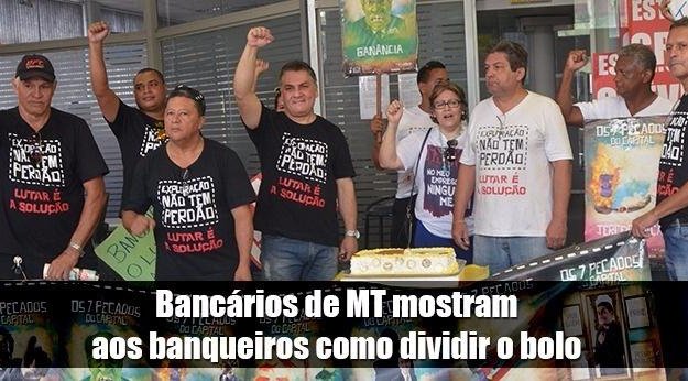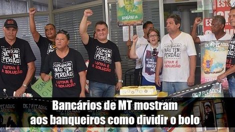 “Estamos distribuindo o Bolo para mostrar à população que os banqueiros precisam dividir o lucro que acumulam explorando os correntista e seus trabalhadores e insistem em apresentar uma proposta que achata o salário da categoria”, explica o presidente do Sindicato dos Bancários de Mato Grosso, Jose Guerra, que também faz parte do Comando Nacional dos Bancários.