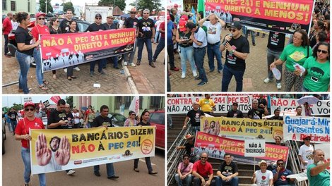 "Nós bancários não vamos nos curvar diante desta tentativa de ataque aos nossos direitos e aos direitos de toda a classe trabalhadora. Sabemos que o sistema financeiro é um dos maiores patrocinadores desta onda de projetos que só vem para retirar as conquistas dos trabalhadores, causando o medo e a incerteza de todos com essa ameaça de congelamento de investimentos sociais e também dessa famigerada terceirização sem limites que poderá nos levar para o tempo das cavernas e da escravidão", disparou Pinheiro.