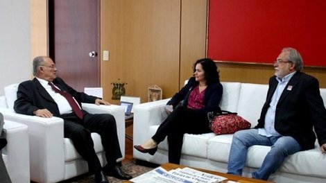 São Paulo - O ministro da Cultura, Roberto Freire, recebeu, na tarde desta quinta-feira (24), a presidenta do Sindicato dos Bancários de São Paulo, Juvândia Moreira, e o presidente da Confederação Nacional dos Trabalhadores do Ramo Financeiro (Contraf-CUT), Roberto Antônio von der Osten. O principal tema do encontro foi a renovação do Vale-Cultura, um cartão magnético de R$ 50 mensais que permite que o beneficiário adquira bens e serviços culturais.