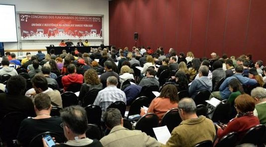 São Paulo - Os funcionários do Banco do Brasil e da Caixa aprovaram o regimento interno do 27º Congresso Nacional dos Funcionários do BB, na noite desta sexta-feira (17), no Hotel Holiday Inn – Parque Anhembi, em São Paulo. Depois da aprovação, as correntes políticas defenderam suas teses, as quais compõem o caderno distribuído a cada delegado e delegada.