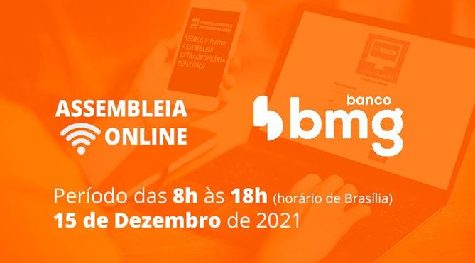 Sindicato dos Empregados em Estabelecimentos Bancários de Campo Grande – MS e Região, inscrito no CNPJ/MF sob o nº 03.270.741/0001-80, Registro sindical nº 91.200.000 por seu presidente abaixo assinado, convoca todos os empregados bancários, associados ou não, que prestam serviços no Banco BMG S/A, na base territorial deste sindicato, para participarem da assembleia extraordinária específica que se realizará de forma remota/virtual no período das 08:00 horas até às 18:00 horas do dia 15 de dezembro de 2021, na forma disposta no site https://www.seebcgms.org.br/ onde estarão disponíveis todas as informações necessárias para a deliberação acerca da: