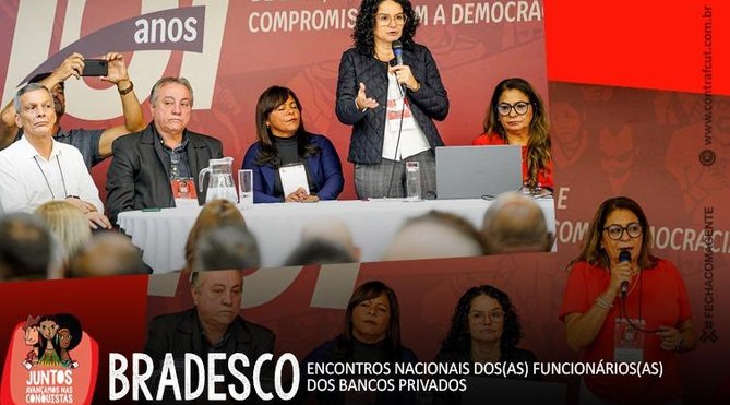 “Estamos no momento do ano mais importante para a nossa mobilização, que é a realização de nossa Campanha Nacional 2024. Aqui aprovamos a minuta específica dos trabalhadores do Bradesco, que será entregue ao banco para darmos início aos debates específicos na mesa de negociação com o Bradesco. Paralelamente, vamos construir, na Conferência Nacional dos Bancários, que começa sexta e se encerra no domingo, a pauta de reivindicações geral da categoria, a ser negociada entre Comando Nacional dos Bancários e a Fenaban. Portanto, é fundamental que os bancários do Bradesco estejam atentos, que acompanhem e participem ativamente de todas as etapas da nossa Campanha. Juntos avançamos nas conquistas. Vamos à luta!”, disse a coordenadora da Comissão de Organização dos Empregados (COE) do Bradesco, Magaly Fagundes.