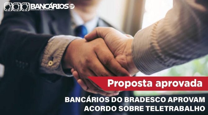 A assembleia virtual específica dos bancários do Bradesco de Brasília aprovou com mais de 80% dos votos válidos a proposta de acordo que visa regulamentar o teletrabalho no banco. A votação teve início na manhã do domingo (13) e foi finalizada às 12h desta segunda-feira (14), contando com a participação de 147 trabalhadores.