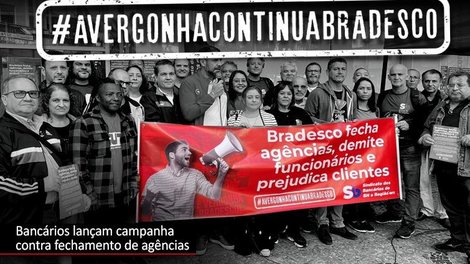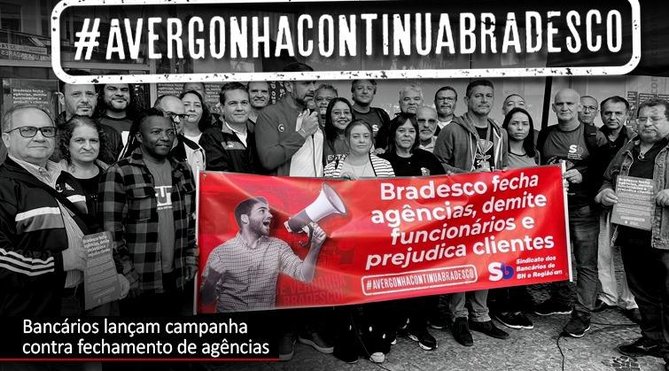 Nesta quarta-feira (31), sindicatos de bancários de todo o Brasil lançaram a campanha #AVergonhaContinuaBradesco. A iniciativa, idealizada pela Comissão de Organização dos Empregados (COE) do Bradesco, tem como objetivo protestar contra o fechamento de agências e as demissões que ocorreram nos últimos meses. As ações tomadas pelo banco sobrecarregaram aqueles que ainda permanecem trabalhando. Além disso, os clientes e a população como um todo são afetados pelo aumento das filas, demora no atendimento e dificuldade de acesso aos serviços bancários. Todas as bases sindicais da Federação dos Bancários do Centro-Norte (Fetec-CUT/CN) participaram das artividades