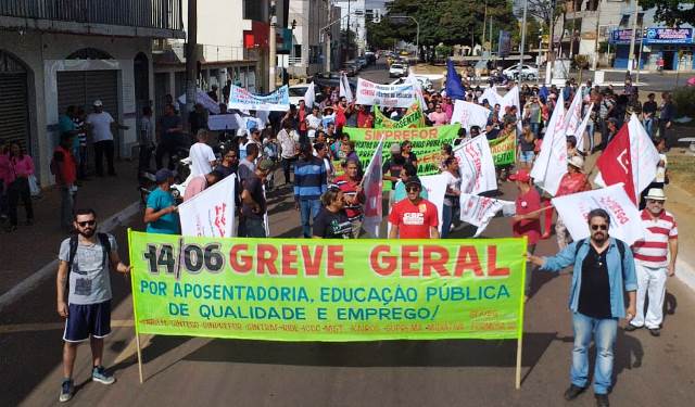 Trabalhadores e trabalhadoras de Formosa-GO, na base do Sintraf-Ride, ocuparam o centro da cidade em adesão à greve geral nacional convocada para este 14 de junho pelas centrais sindicais.
