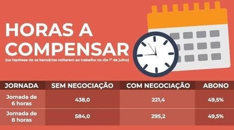 Além disso, os trabalhadores terão desconto de 10% nas horas devidas. Por exemplo, se o bancário sair da quarentena devendo 200 horas, ele só terá de compensar 180 horas, pois 20 horas (10% das horas devidas) serão abonadas.