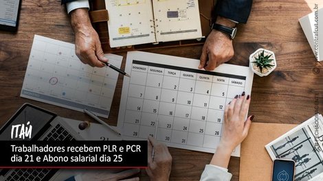 Os bancários do Itaú receberão o pagamento do Programa Complementar de Resultados (PCR) e da Participação nos Lucros e/ou Resultados (PLR) no próximo dia 21 e o abono salarial no dia 25. O anúncio foi feito em reunião realizada na tarde desta quinta-feira (10), após cobrança da Confederação Nacional dos Trabalhadores Ramo Financeiro (Contraf-CUT).