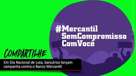 Os funcionários do Banco Mercantil do Brasil realizam, nesta quarta-feira (8), o Dia Nacional de Lutas em repúdio às demissões e em solidariedade às dezenas de pais e mães de famílias que perderam seus empregos em meio à pandemia do coronavírus (Covid-19). A data será marcada por série de intervenções urbanas e mobilizações virtuais.